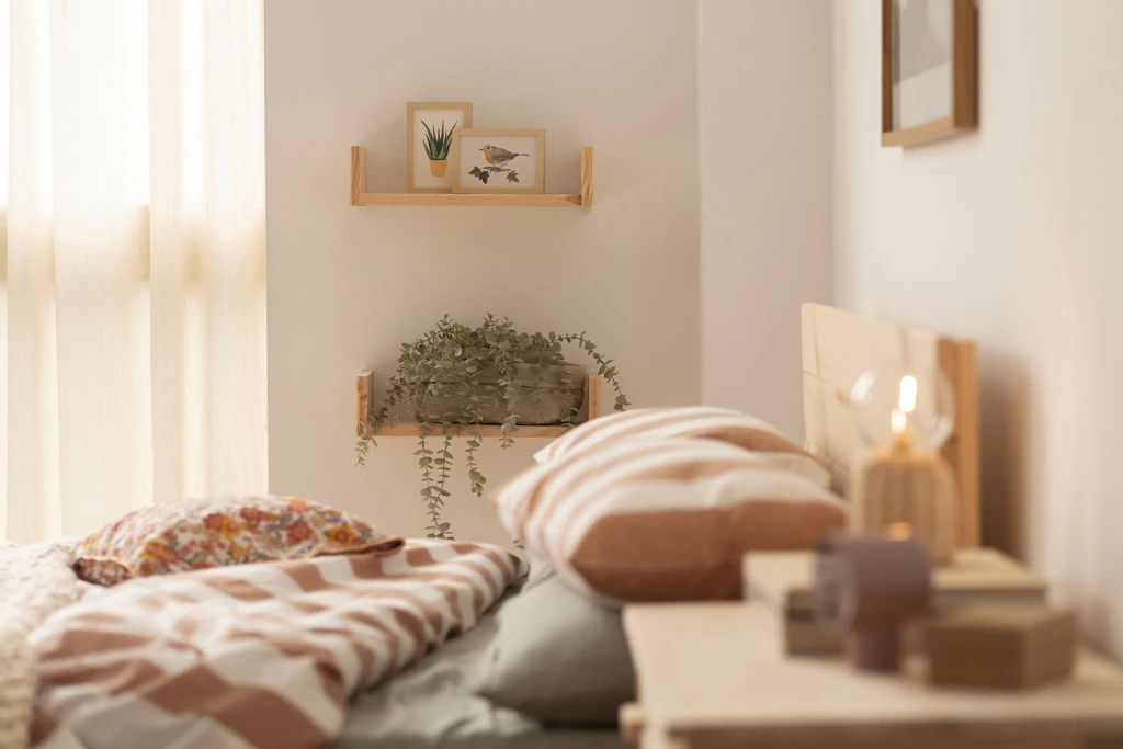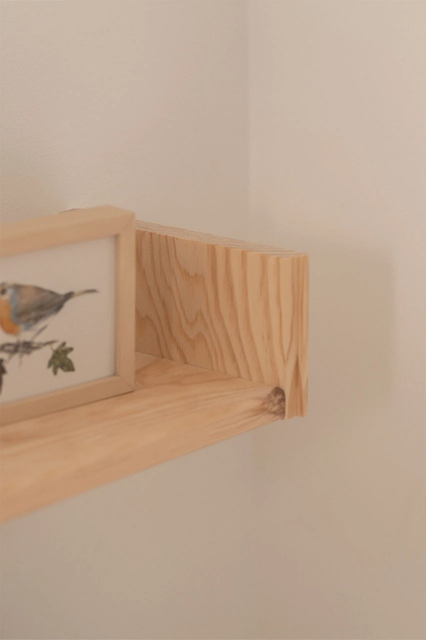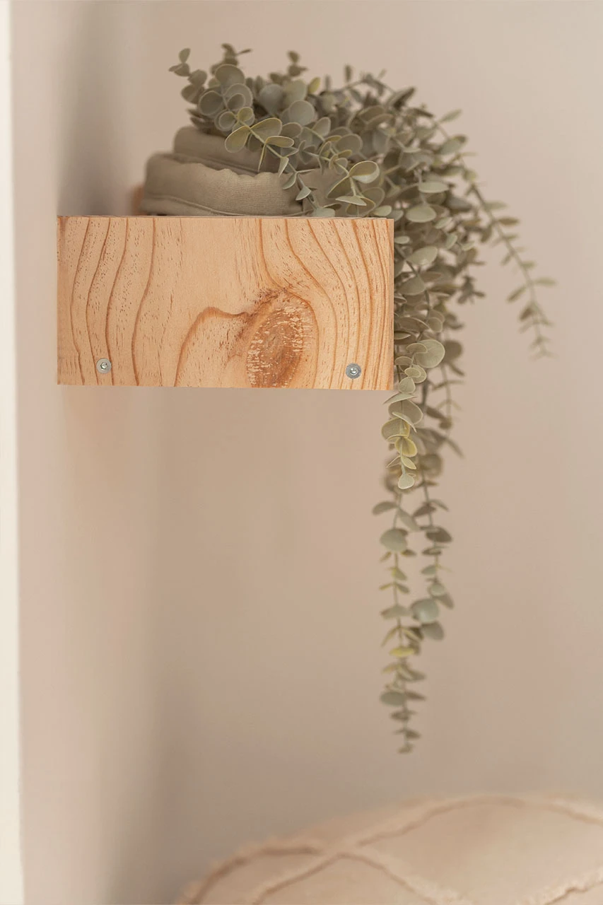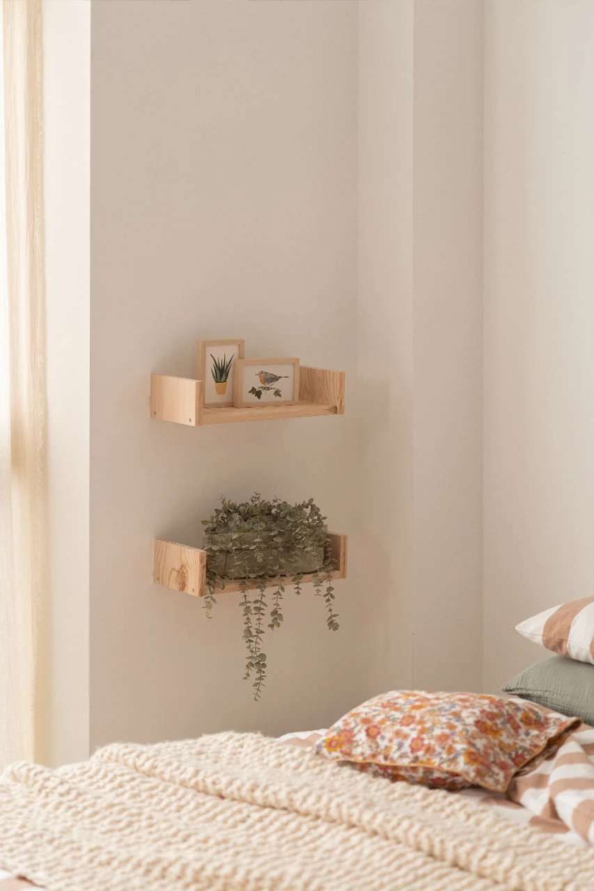 Estante flotante de pared de madera de pino natural. Un estante de pared con una balda, muy práctico como estantería, despensero o porta marcos.