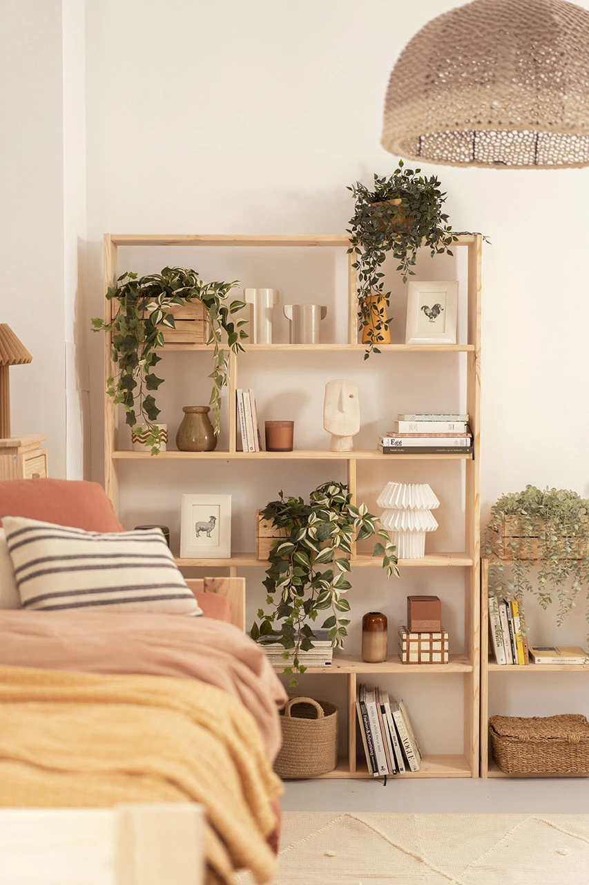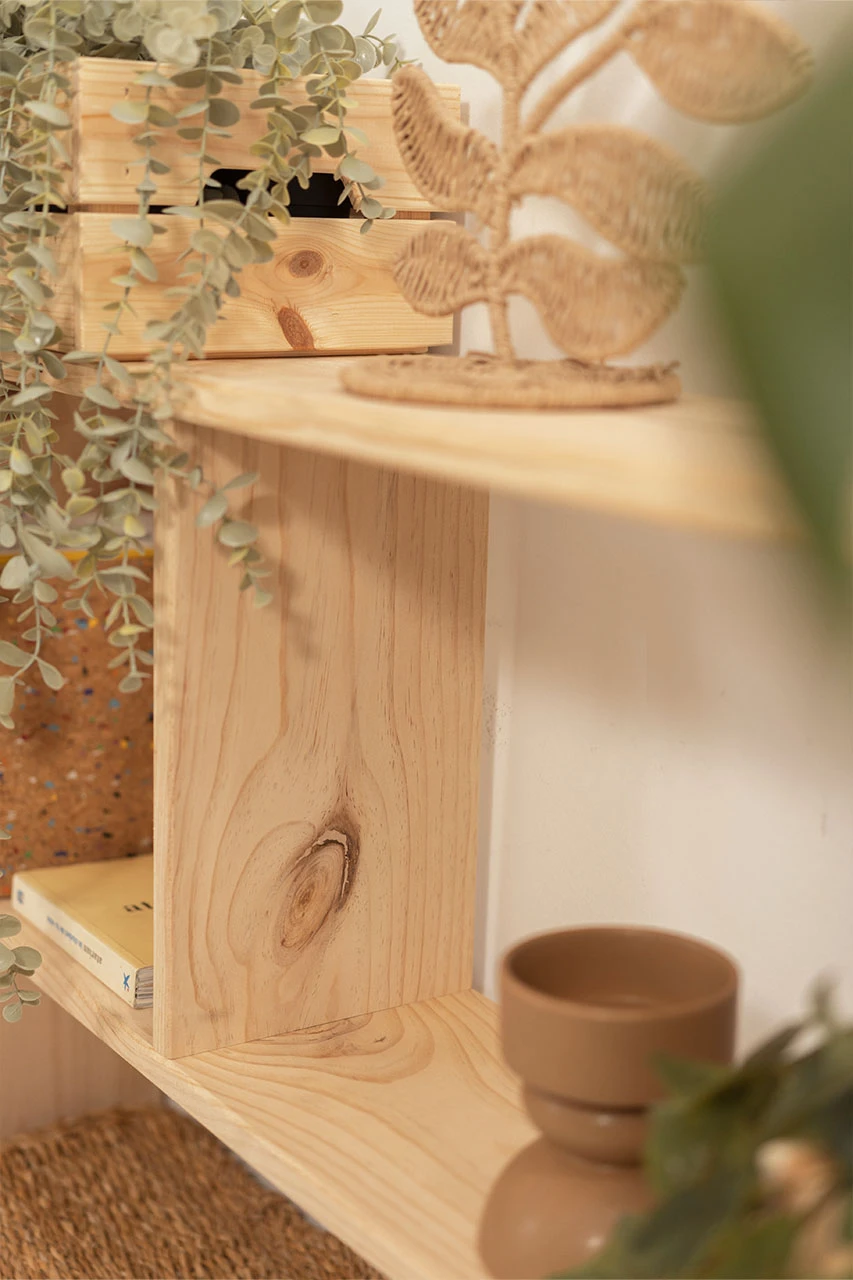 Estantería de madera natural con dos estantes