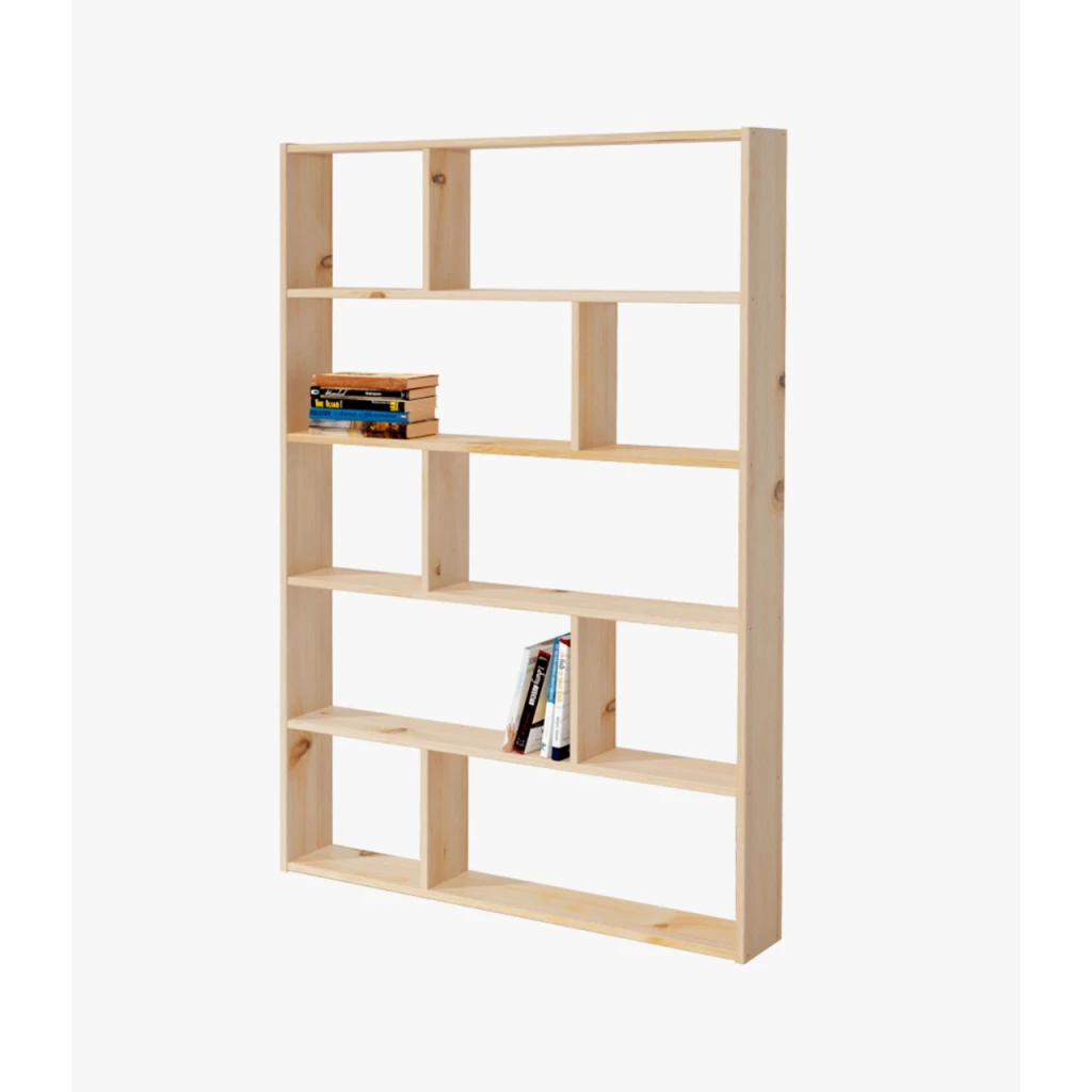 para el almacenaje de libros y objetos decorativos. Una estantería asimétrica para pared o para apoyar en el suelo.