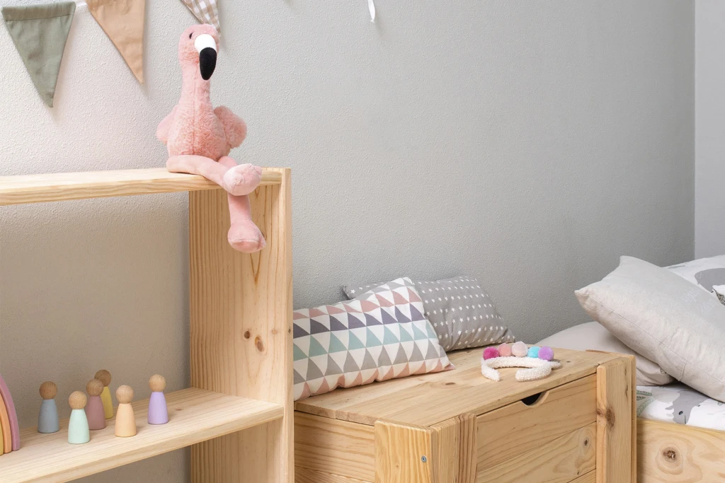 Este es un mueble sostenible y reciclable fabricado con madera maciza ecológica de pino paraná/tadea, procedente de bosques certificados. Madera natural, lijada a máquina para lograr el acabado final.