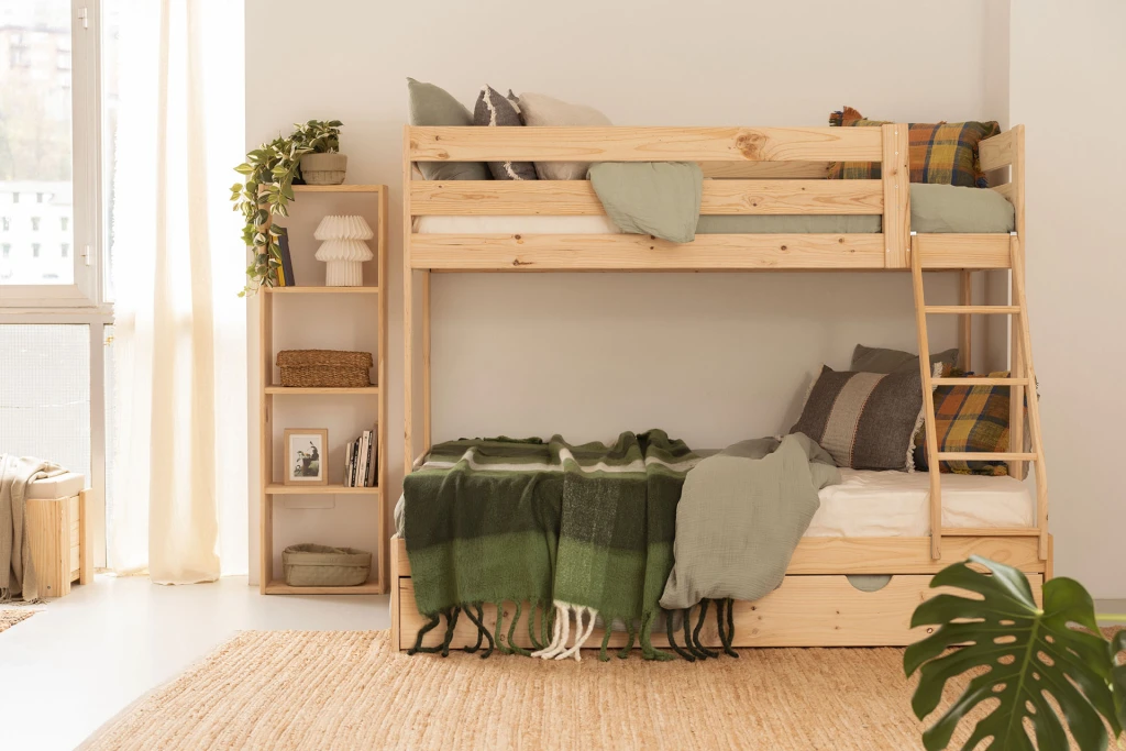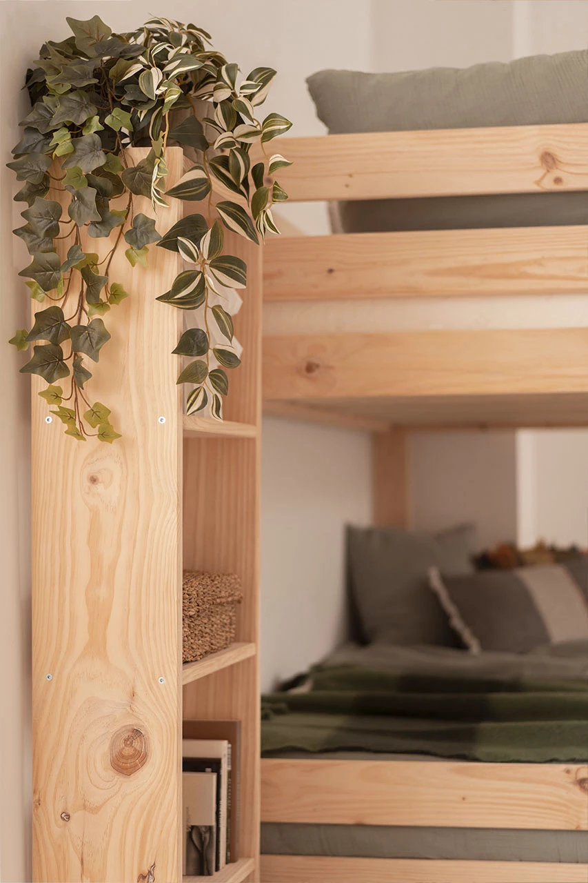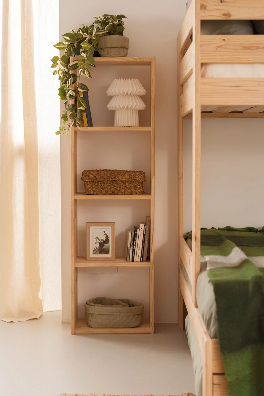 Este es un mueble sostenible y reciclable fabricado con madera maciza ecológica de pino paraná/tadea, procedente de bosques certificados. Madera natural, lijada a máquina para lograr el acabado final.