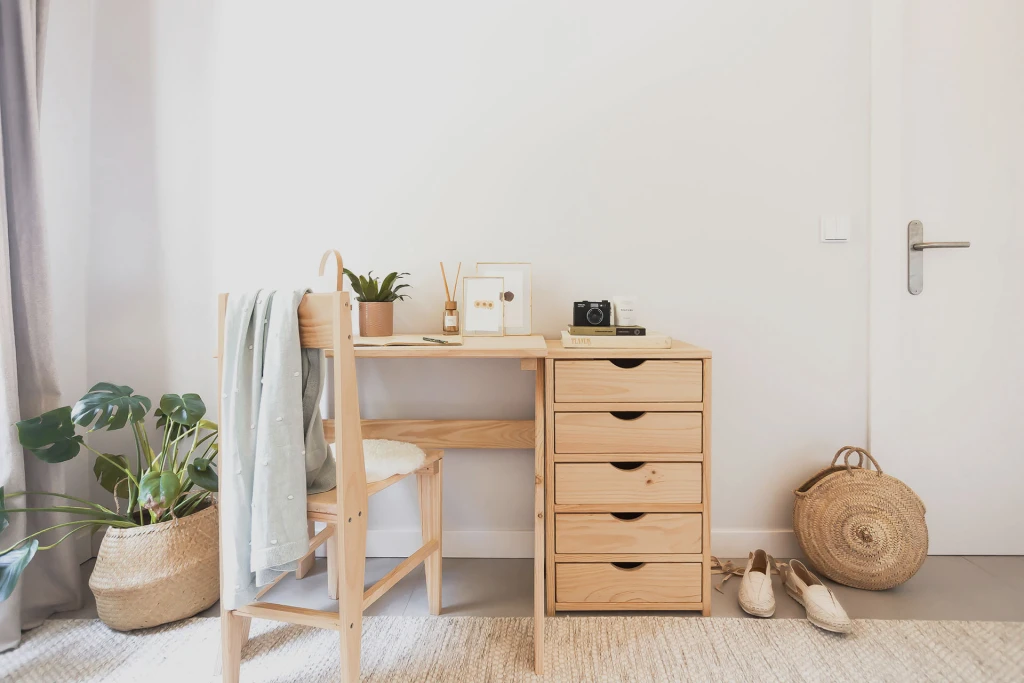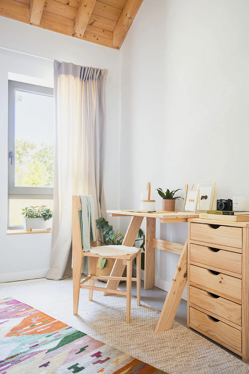 Madera natural, sin tintes ni barnices, lijada con máquina, lista para disfrutar al tacto y a la vista. Aunque como todas las maderas naturales, es un material con una superficie más delicada que las superficies sintéticas. Por eso conviene mimarla de vez en cuando.