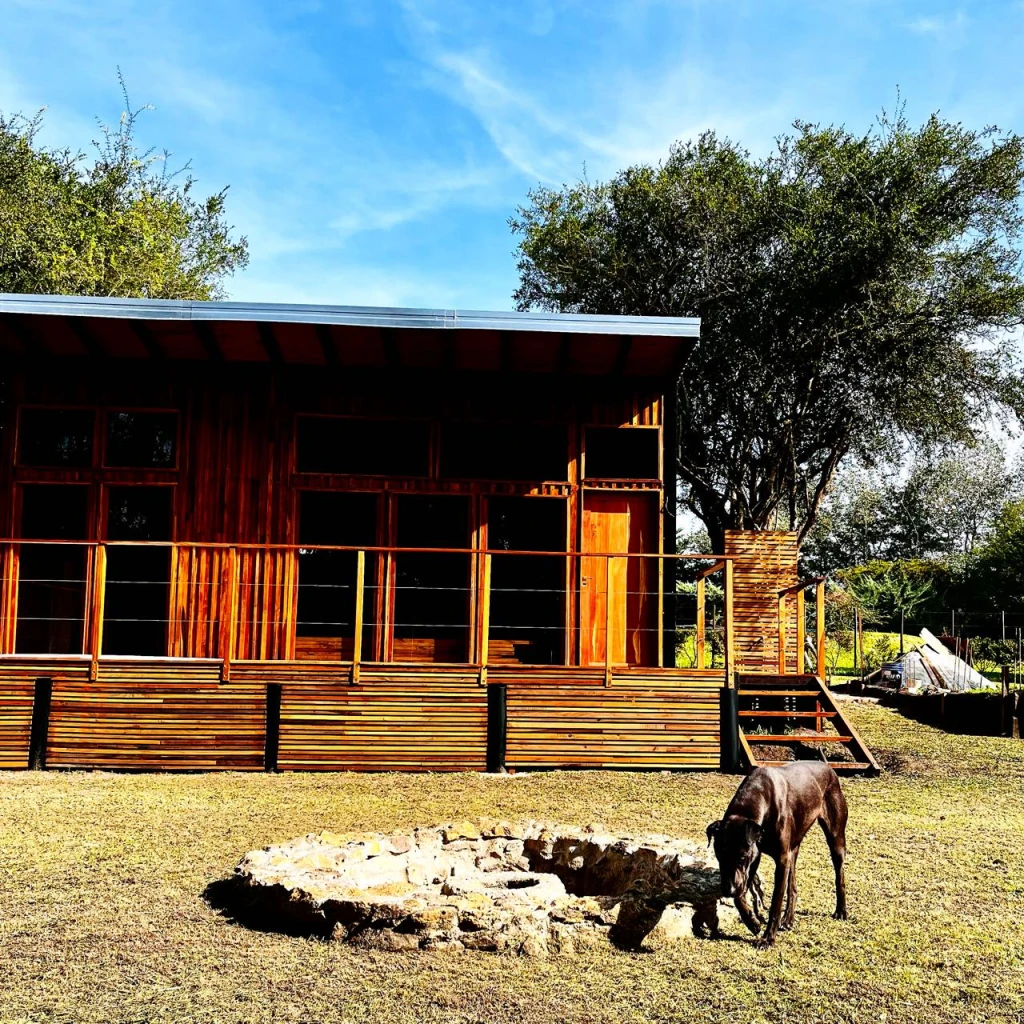 Cabaña construida en materiales reciclados y maderas nativas en el marco de la arquitectura circular
